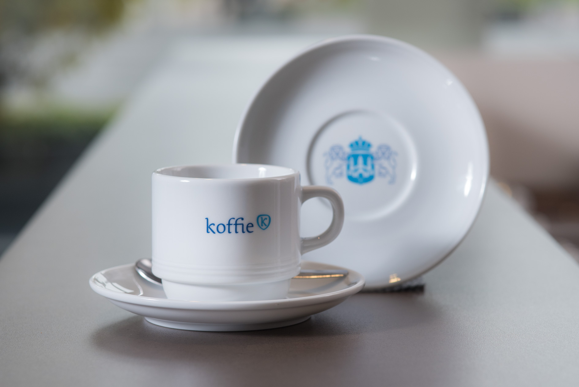 AKB kwam met een mooie oplossing: het logo van de stad werd op de kopjes gedrukt, en op de schoteltjes staat het nieuwe stadswapen. Dat zorgt voor een leuke verrassing als je je kopje optilt.”