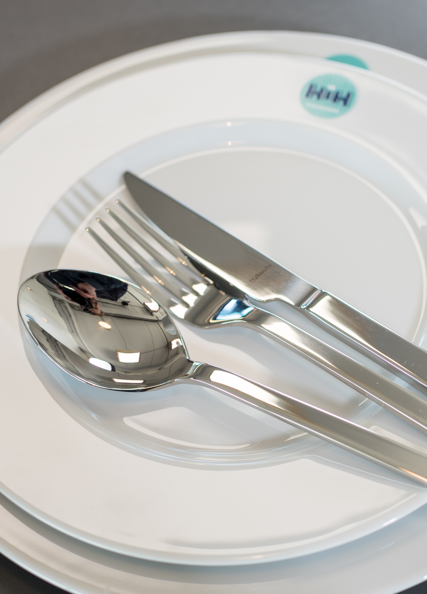Voor bestek viel ons oog op 'Cube' van Amefa. Omdat het handvat doet denken aan een vierkant profiel van staal, dat vanuit een strakke lijn uitmondt in een sierlijk stuk bestek. Dat reflecteert naar ons idee wat wij ook doen voor de klant: iets ontwerpen dat van ruw grondmateriaal een efficiënt en hygiënisch werkende machine maakt.